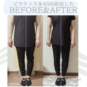 ビフォーは骨盤に対して胸郭(肋骨周り)が後ろにきています。その為、腰が反れて腰痛の原因になっていました💦