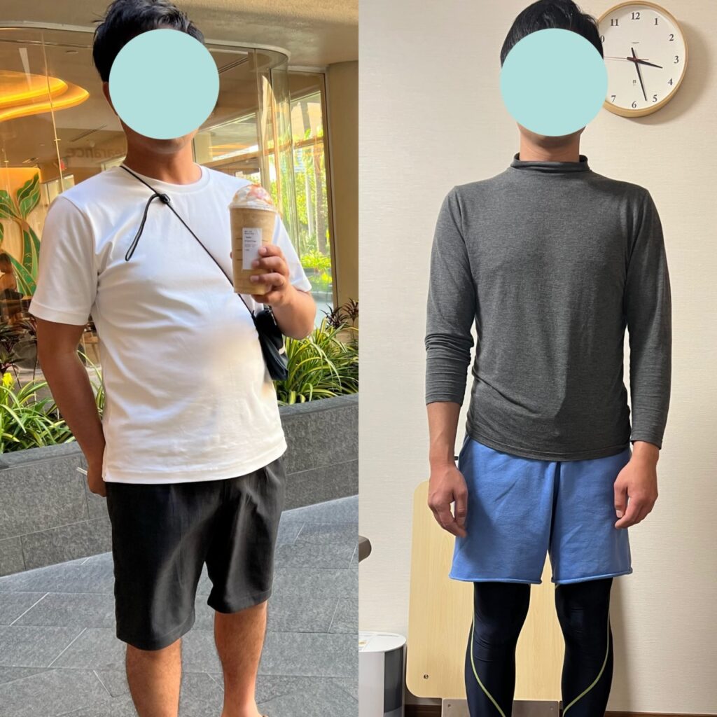 左:ビフォー(181cm/94kg) 右:アフター(181cm/84kg)
